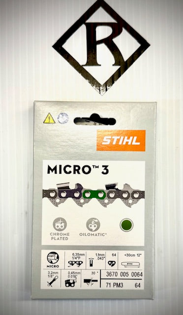 Stihl Oilomatic Saw Chain 12", 1/4" Pitch, .043" Gauge Part # 71PM3 64, 36700050064 STIHL 71PM3-64 3670 005 0064 Oilomatic...